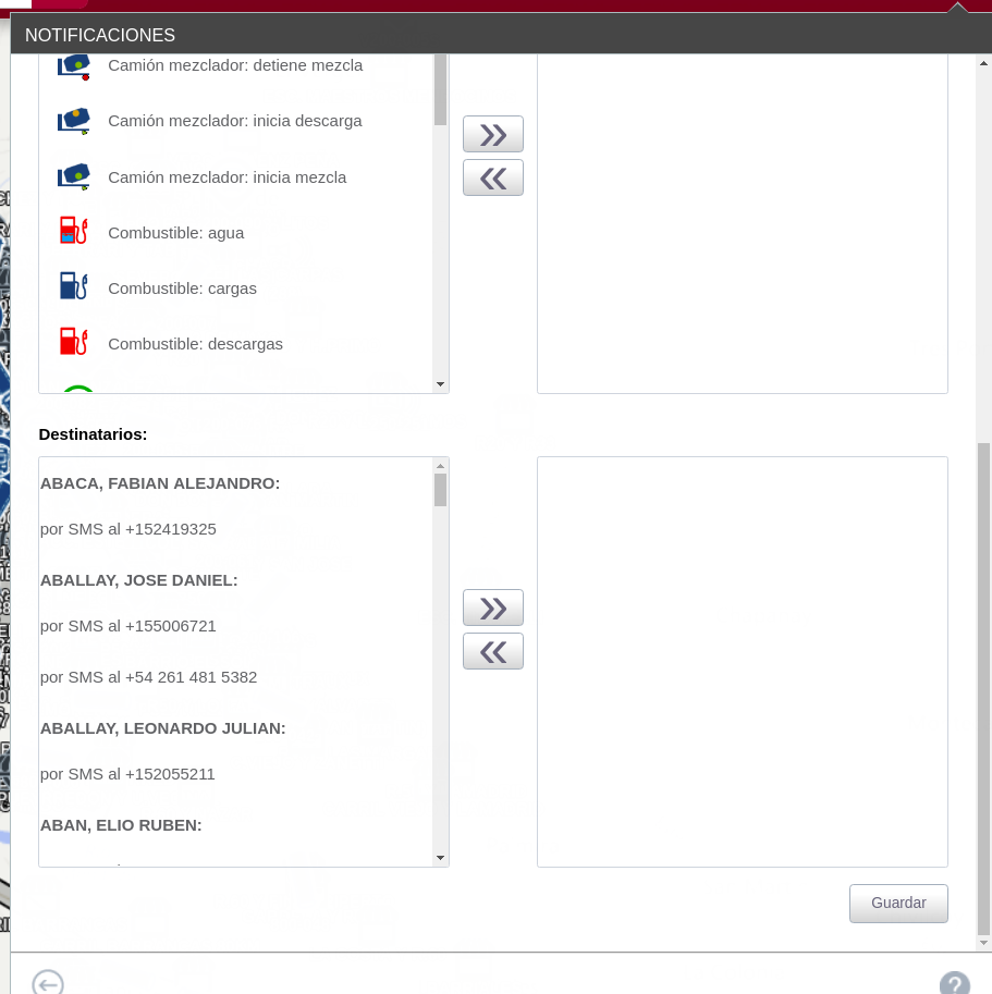 Una vez seleccionado la unidad, el evento y destinatario de la notificación, damos GUARDAR y listo!