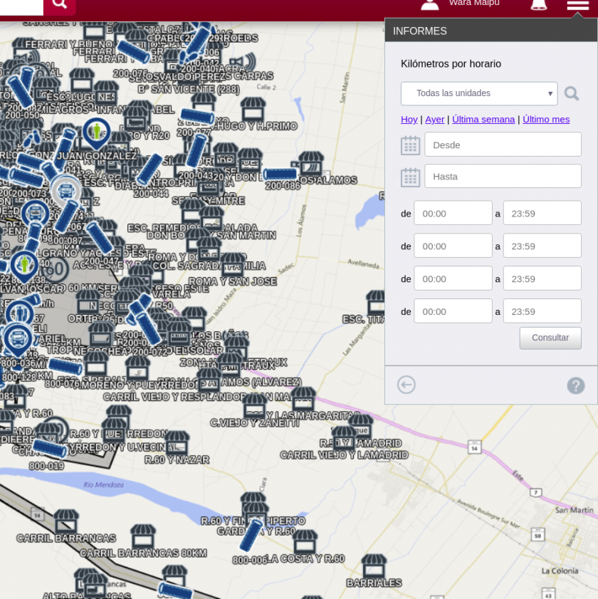 INFORME KILÓMETROS POR HORARIO, con este informe podemos obtener los KM que realiza 1 o todas las unidades en un o varios horarios. Exportable a excel.