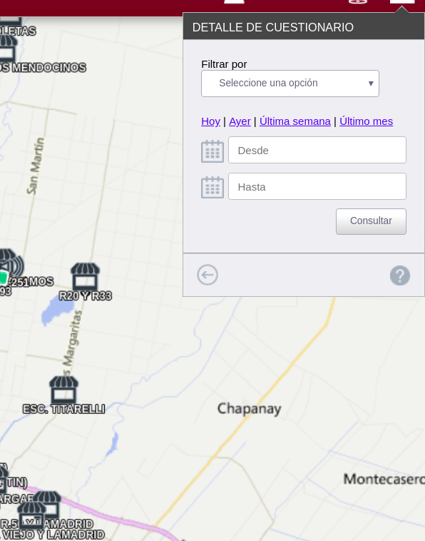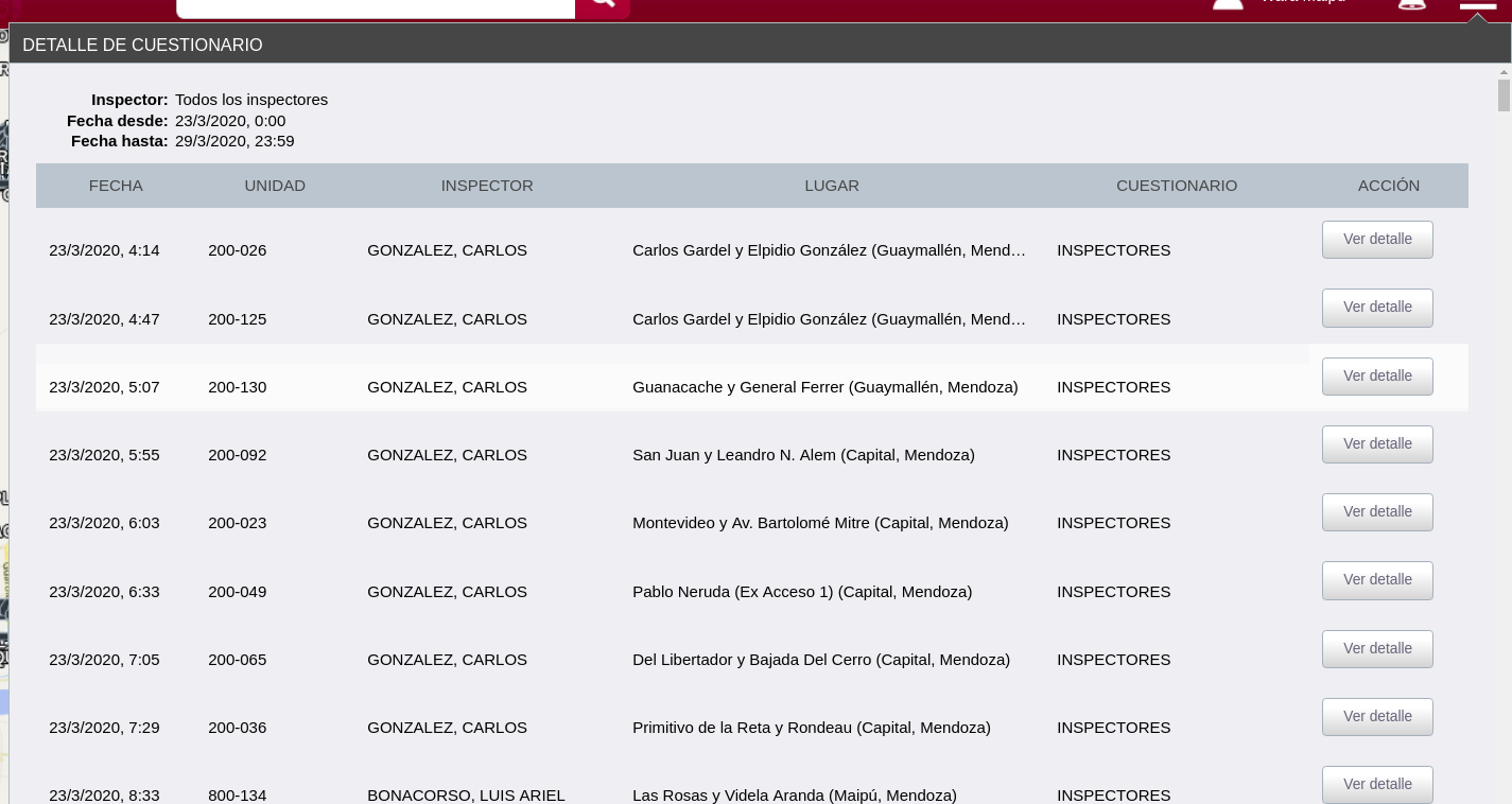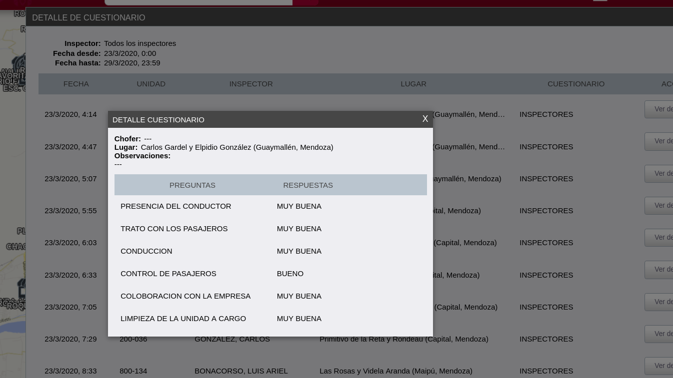 Cuando tocamos el botón de "ver detalle", aparece un recuadro sobre la planilla general, donde podemos ver el detalle de las preguntas realizadas.