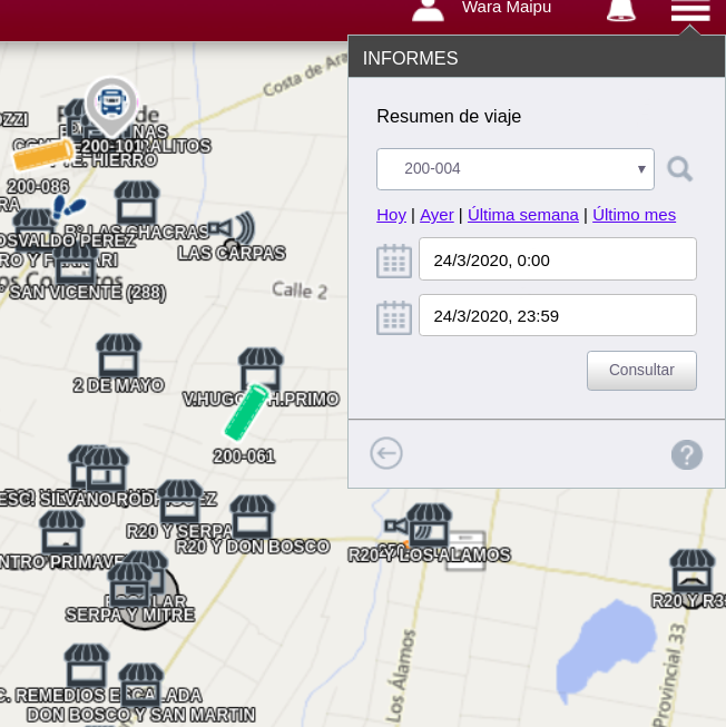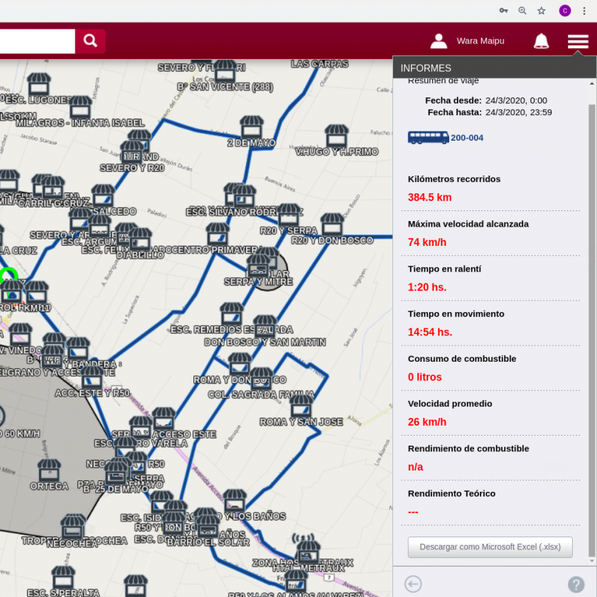 El Consumo de combustible en caso de tener sensor de combustible (solo para camiones, micros y maquinas viales),